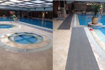 穿結(jié)構(gòu)防水層管道,安裝時加止水環(huán)。沿周邊處留出混凝土10mm×(5~8)mm,待混凝土養(yǎng)護(hù)期滿后,在凹槽內(nèi)先用密封膠專用基面處理劑涂1遍,再用聚氨酯密封膠進(jìn)行密封,未留凹槽時,應(yīng)在管周圍拐角處加涂250mm寬防水涂料2遍,做附加增強(qiáng)層。